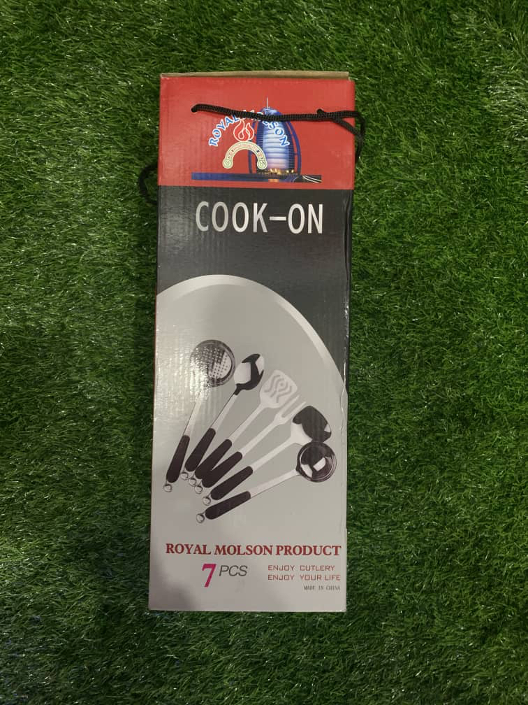 This 7pcs kitchen tool set is a combo utility tool specifically made for cooking convenience as it comes with different spoon set with heat resistant handles arranged on a hanger.